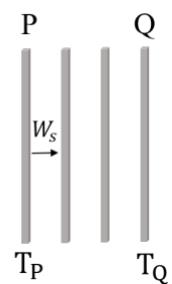 Two black body plates P and Q at temperatures and . Power transfer . Two identical plates introduced between them. Steady state power . Ratio is:
